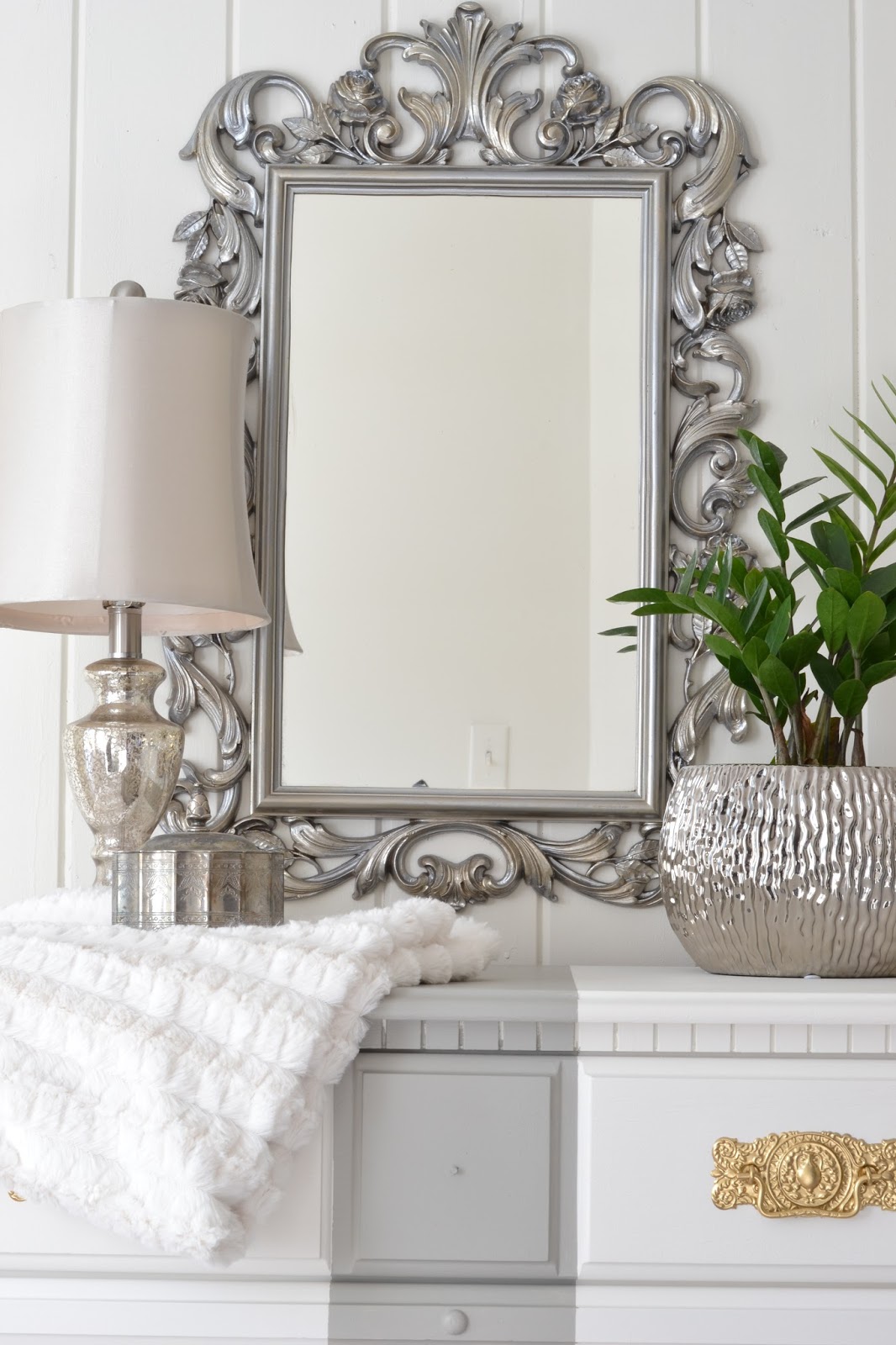 He'll likely make an appearance on the silver leafed vanity in an upcoming post about the bedroom updates.