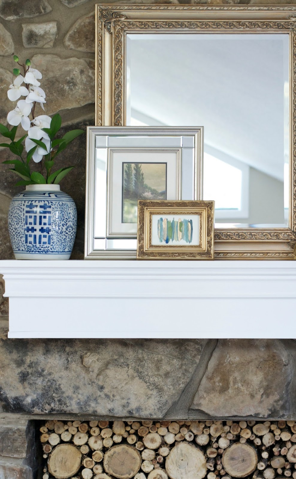 I found most of the stuff on my mantle in the first couple months of Fall, and the thrift stores were absolutely packed with stuff around that time. The ginger jar, gold frame, and mirror were all found there.
